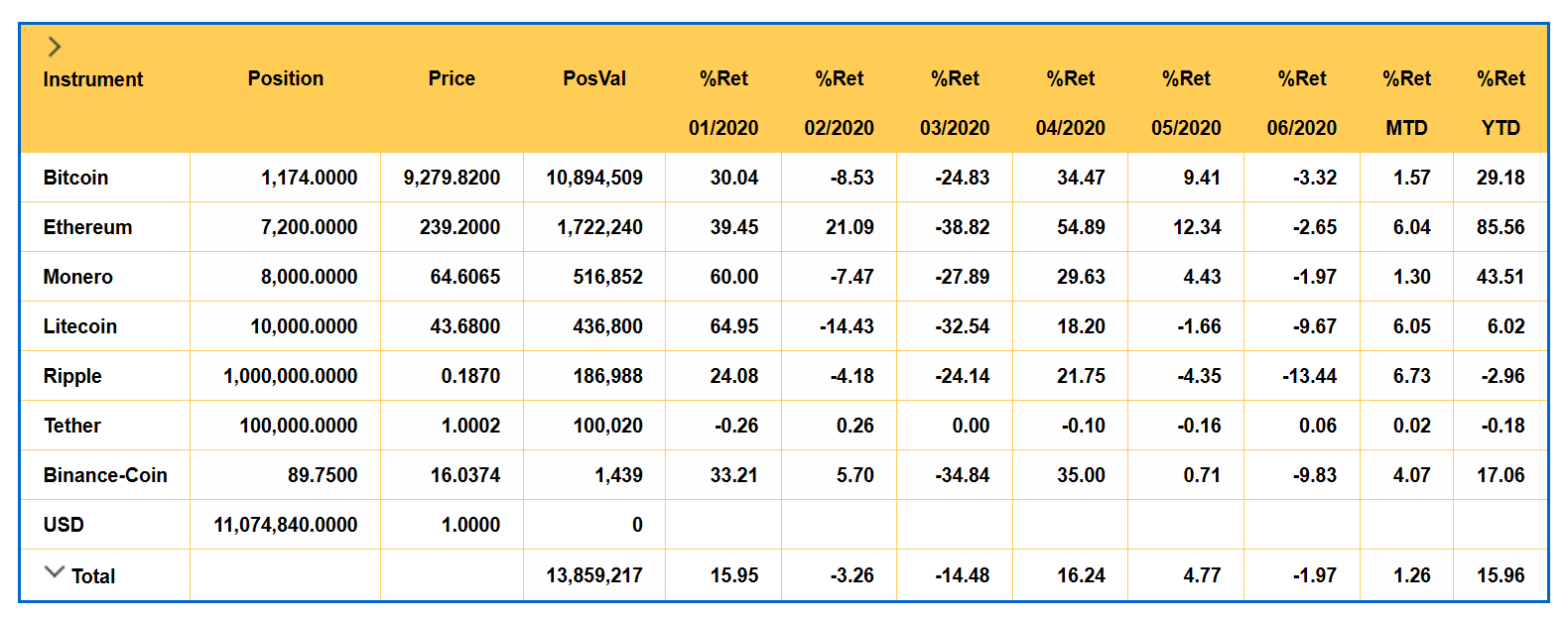 FundsTOTAL Crypto provides a consolidated real-time portfolio view of digital assets (including spot, options, perpetuals and futures) traded on multiple crypto exchanges and enables traders and hedge funds to effectively manage and analyze crypto portfolios, quantify risk, measure performance and collaborate with colleagues.